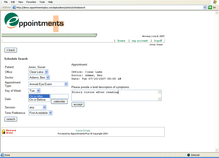To learn more about our Products & Services, please visit one of the following pages that provide much greater detail about what Eppointments can offer you: Scheduling Features |